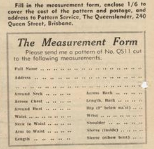 Arrangements have been made with leading fashion designers and paper pattern manufacturers to supply each issue of The Queenslander with up-to-date and useful styles, for which accurate and simple paper patterns may be obtained using the order form below. (The Queenslander, 27 August 1936)